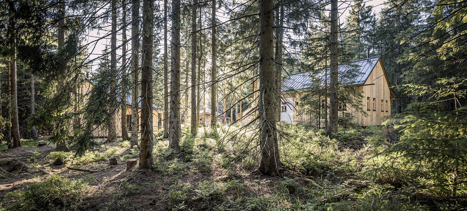 Als Berg- und Skiführer, den es sehr früh in die Welt der höchsten Gipfel und größten Abenteuer gezogen hatte, weiß Günter Hofbauer, dass man die Dinge lieber selbst in die Hand nimmt, statt zu warten. „Wir haben doch den Kontakt zur Natur vielfach schon verloren. Wir diskutieren über den Klimawandel und einen viel zu schnell drehenden Alltag und haben keine Ahnung was anders werden muss.“ Mit diesem Gefühl reifte in Günter die Idee zu einem eigenen kleinen Feriendorf, in dem er seine Vorstellung von zurückgenommenem und achtsamen Leben umsetzen wollte. Zusammen haben wir ein erstes Impulspapier entwickelt. Und grundsätzliche Ideen für das Waldlerdorf skizziert. Heute stehen sehr spannende Hütten im tiefen Grün. Die Gewerke und Lieferanten für das Projekt kamen alle aus dem Mühlviertel und drumherum. Die Materialien sind echt und angenehm, die Räume bewusst knapp, damit aber sehr überzeugend. Wobei es in jeder Hütte eine Sauna, einen Kaminofen und eine Außendusche gibt. Und als Zentrum der Häuser eine Böhmische Schwarzkuchl, abgeleitet aus den Traditionen der Waldler. „Weniger ist da einfach mehr“, sind Günter und Schöngoldbraun überzeugt.